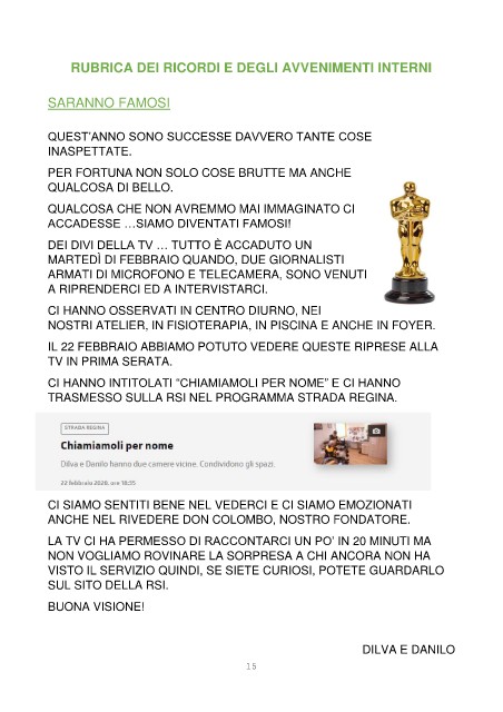 RUBRICA DEI RICORDI E DEGLI AVVENIMENTI INTERNI