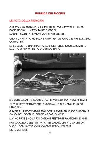 UNO, CON MARTA, RICERCA E RIGUARDA LE FOTO DEL PASSATO SUL